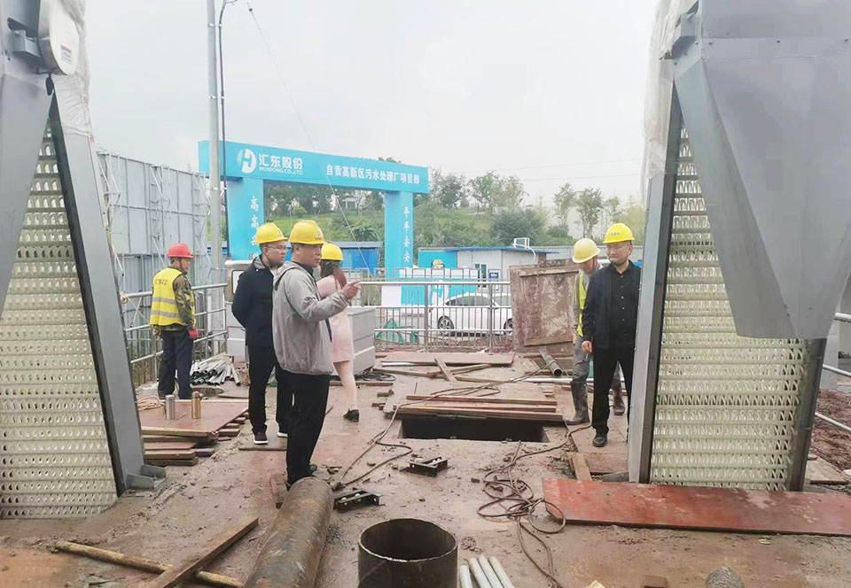 10月9日,萬川環保集糰董事(shi)長謝(xie)旾(chun)磊(lei)、副董事(shi)長馬總、工程公司經理劉總一行(xing)人到四川自貢項(xiang)目工地進行檢査指導工作。謝旾磊董事長對(dui)項目的施工(gong)安排、安全、質量、進度等情況進行了詳細了解,對現場的施工工作錶達了認可。
